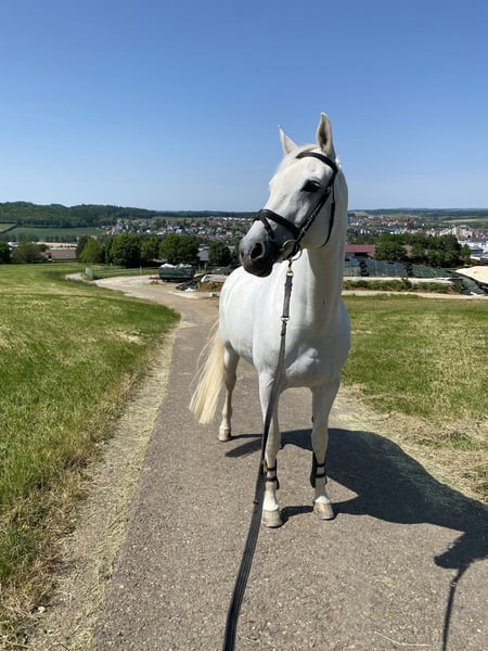 Verkaufe meine hübsche 19-jährige Hannoveraner Schimmelstute. Schweren Herzens verkaufe ich meine bald 19-jährige Schimmelstute. Abstimmung Calido I. Stockmaß knapp 1,70m. Sie ist bereits seit 14 Jahren in meinem Besitz, wurde 5-jährige von mir gekauft und kam davor direkt vom Züchter aus dem Norden. Sie hat damals eine erfolgreiche Stutenleistungsprüfung abgelegt und eine tolle springgezogene Abstammung mit Vermögen. Sie ist eingetragene Zuchtstute. Ich selbst habe sie einige Jahre Turnier geritten siegreich bis L-Springen. Auch auf vielen Springlehrgängen waren wir unterwegs. Nun ist sie seit einigen Jahren Freizeitpferd und wird aktuell von mir und meiner Reitbeteiligung 3-4 mal die Woche geritten. Sie ist kein Anfängerpferd! Sensibel und gerne mal etwas schreckhaft und doch hat sie ihr Herz am richtigen Fleck. Ruhe und Geduld haben sich immer ausbezahlt. Aufgrund nebenberuflich Studium, Corona-Zeit und geändertem Interesse hab ich das Turnierreiten aufgehört, da es zeitlich einfach nicht mehr machbar war. Da sie nun bald 19 Jahre ist wünsche ich mir für sie einen schönen Platz als Freizeitpferd. Auch als Zuchtstute oder langfristig mal als Beistellpferd wäre denkbar mit 24/7 Weidezugang. Sie liebt es auch einfach gut umsorgt zu werden und wäre auch ohne reiten glücklich. Bewegung braucht sie aber trotzdem- longieren, freilaufen lassen etc. Meine Stute hat seit vielen Jahren chronisches Asthma(überempfindlich auf Staub),was uns aber beim reiten und im Alltag nie gehindert hat. Gute Stallbedingungen, passendes Futter sind hier das A und O. Prophylaktisch inhalieren wir seit einigen Jahren mit einfacher Kochsalzlösung und dadurch haben wir seit einigen Jahren keinen Tierarzt mehr gebraucht. Das funktioniert prima und hilft uns sehr gut. Ansonsten ist sie immer fit, nie Probleme mit Lahmheit etc. Regelmäßig beim Zahnarzt, ebenso regelmäßig entwurmt. Sie ist schmiedefromm, verladefromm auch geländetauglich. Hier hat sie trotzdem gerne auch mal eine Begleitung dabei (egal ob zu Fuß, auf dem Fahrrad oder als Pferd ;-))da sie doch ab und an mal glotz oder etwas gruselig findet, dann ist sie aber super entspannt, egal ob Schritt, Trab oder Galopp. Allein sein ist für sie aber überhaupt kein Problem ( Stall, Anhänger, Koppel…). Auf der Koppel ist sie brav und war sowohl mit Stuten als auch mit Wallachen draußen. Da ich ihr zeitlich einfach nicht mehr gerecht werden kann, wie ich es gerne hätte und vor einigen Monaten Mama geworden bin und sich nun die Prioritäten nochmal geändert haben möchte ich sie in gute Hände abgeben, damit sie die Aufmerksamkeit bekommt, die sie verdient hat. Das Zubehör wie Sattel, Inhalator etc. würde ich natürlich alles, wenn gewünscht, mitverkaufen. Platz vor Preis! Bei ernsthaftem Interesse gerne PN an mich. Vielen Dank!