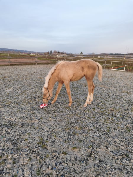 Wegen unzuverlässiger Käufer wieder auf dem Markt. Man lernt dazu... Aufgrund von Schwangerschaft wäre ich bereit mich von meinem Nachwuchspferd zu trennen. Kein Notverkauf! Bei Elsa trifft eine wunderschöne Palominofarbe auf beste Genetik für Spring-und Vielseitigkeitssport. Eingetragen beim SCSL - Studbook du Cheval de Selle Luxembourgeois. Beste Linien für Springen und Vielseitigkeit. Hartes Leistungsblut und ein solider Mutterstamm. Vater Nachwuchshengst des berühmten Stall der Muze. Mutter mit Freispringen im Hannoveraner Hauptstutbuch, Großmutter mit Sporterfolgen Elsa präsentiert sich als sehr korrekter und mutiger Jährling mit viel Kraft in der Hinterhand und einem harmonischen Exterieur. Sie hat viel Energie, ist aber sehr umgänglich. Lässt sich brav halftern, anbinden und führen, gibt Hufe und lässt sich überall anfassen, einsprühen, etc. Sehr unerschrocken. Ideales Sportpferd für einen ambitionierten und versierten Reiter/Reiterin in der Vielseitigkeit oder im Springsport. Endmaß sollte bei ca. 1,66m liegen. In Premium-Aufzucht mit hochwertigem Futter, regelmäßigem Schmied und täglichem Weidegang seit Geburt. Kann dort auch verbleiben, falls ein Aufzuchtplatz benötigt wird. Platz vor Preis und Verhandlungssache. Sportliche Förderung steht im Vordergrund. Bei entsprechenden Referenzen bin ich bereit weit entgegenzukommen.