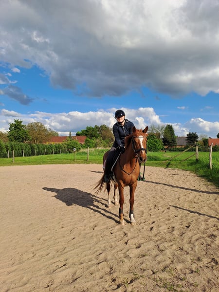 Dunkelfuchsstute von Chalan×Drosselklang II Super lieb und umgänglich. Sie ist außerdem sehr menschenbezogen. Im Gelände sowie auf dem Platz sehr artig und nicht glotzig. Sie hat 2025 ein sehr schickes Stutfohlen bekommen, dieses kann ebenfalls gerne besichtigt werden. Vor kurzem wurde sie mal wieder geritten, Videos vorhanden, sie war trotz 1 1/2 Jahren stehen super lieb. Sie ist ca. 1,56 m und von 2006. Sie hat keine Gesundheitseinschränkungen, also top fit. Bei weiteren Fragen gerne melden! Wir wünschen uns ein schönes Zuhause für sie, daher gilt Platz vor Preis.
