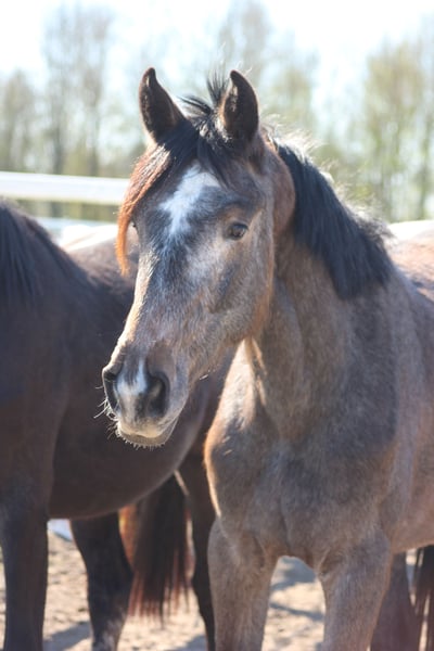 Our Hanoverian mare "Velvet" is urgently looking for a new home, as I can no longer give her the time she deserves due to my studies, part-time job, and other horses. I notice every day how much she enjoys attention and simply needs "her" person. Velvet was born in 2023 and is sired by Valensky x Forsyth. She will be a gray. Thus, she not only has excellent potential but also a clear mind and a friendly disposition. Velvet is regularly groomed and is already familiar with the basics of groundwork, always participating with curiosity, eagerness to learn, and attentiveness. Currently, she spends her days in a paddock with a peer of the same age and in a mixed herd. Velvet is vaccinated, regularly dewormed, and has been introduced to the farrier. We are looking for someone who is already regularly engaging with her and wants to train her lovingly and patiently over the coming years. Please, no inquiries from dealers. We are seeking a forever home with ample space and a dedicated person. Our asking price is €9,000, but it is negotiable for the right place. If you are interested, we look forward to hearing from you. 0176 45857615
