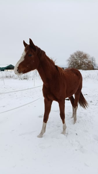 Vendo esta hermosa y joven yegua de Sky x Floriscount Nacida en marzo de 2024 Se presume que será de gran tamaño, su madre mide 1,75 m y puede ser vista en el lugar. Showgirl crece según su edad en una manada mixta con mucho espacio, está muy bien socializada y conoce el ABC del potro. Está acostumbrada a estar al aire libre las 24 horas, así como a la caja, bebederos automáticos, etc. Es muy ejemplar y tranquila con el herrador y el veterinario. Ha sido desparasitata varias veces y está vacunada contra la influenza, tétanos y el virus del Nilo Occidental. Es muy afectuosa con las personas, curiosa y mimosona. Cuenta con papeles completos de Hannover. Si se desea, puede quedarse en el lugar para su crianza y entrenamiento hasta el inicio de su montura. Para más información o si tienes alguna pregunta, no dudes en enviar un mensaje.