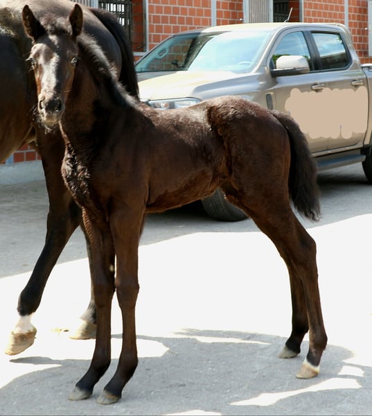Wegen Bestandsverkleinerung abzugeben . Typvolle 2 Jähr. Rappstute von Bon Esprit aus VerbPrSt von Sirtaki x Show Star x Fidermark . Sirtaki selbst stammt ab von Sir Donnerhall und war Rittigkeitssieger seiner HLP . Sportlich war er Seriensieger in L und M Dressuren mit Kindern und Jugendlichen MV S