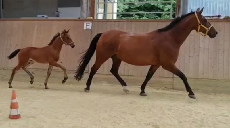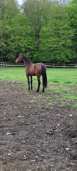 Zum Verkauf steht eine noch ungerittene, vielversprechende und prämierte Hannoveraner Stute, geb. 13.6.2022 mit aktuellem Röntgen TÜV ohne Mängel. - auf den ersten 2 Fotos ist sie 2 Jahre alt - Diese Jungstute besticht durch ihr elegantes Erscheinungsbild, als Braune ohne Abzeichen, mit einem Stockmass von z.Z. 163 cm. Sie zeigt solide Grundgangarten, ist ausbalanciert, mit sehr gutem Schritt, federndem Trab und einer raumgreifender Gallopade. Kein Lampenaustreter! Ebenso verfügt sie über Potenzial und Freude am Sprung. Sie ist anlongiert und kennt freispringen. Mit ihrer freundlichen, aufgeschlossener Art ist sie sowohl für ambitionierte Turnierreiter, als auch für Freizeitreiter eine ideale Partnerin, die Interesse haben, ihr Nachwuchspferd selber auszubilden. Die Stute wurde bei uns zu Hause geboren und stammt mütterlicherseits von Donquestador/ Donnerhall ab. Sie steht in einer altersgemischten Gruppe vom Fohlen bis zum Rentner, auch mit Gleichaltrigen. Als erfahrene Züchter legen wir großen Wert auf ein Entwurmungskonzept und auf hochwertiges Futter von Anfang an. Der Hufschmied ist regelmäßig da. Bei Interesse freuen wir uns über Ihre Kontaktaufnahme, um weitere Informationen zu teilen. Platz vor Preis!
