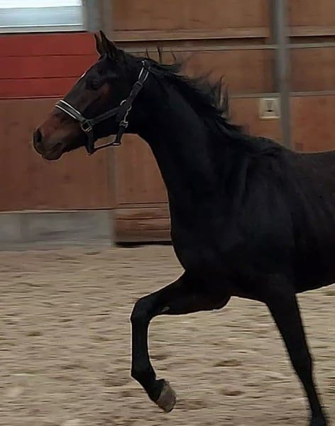 Feejana ist eine bildschöne Jungstute mit Ausdruck und hervorragenden Grundgangarten sowie harmonischen Exterieur. Noch jugendlich und erst im Juli 2023 geboren wird sie bei entsprechender Förderung ihren erfolgreichen Halbgeschwistern im Dressursport nacheifern. Sie steht derzeit im Offenstall, hat eine aktuelle Röntgenuntersuchung incl. Rücken o.b.B. Für Kurzentschlossene die sich einen Rohdiamanten frühzeitig sichern möchten. Ende des Monats April 2026 geht sie dann auf Sommerweide.