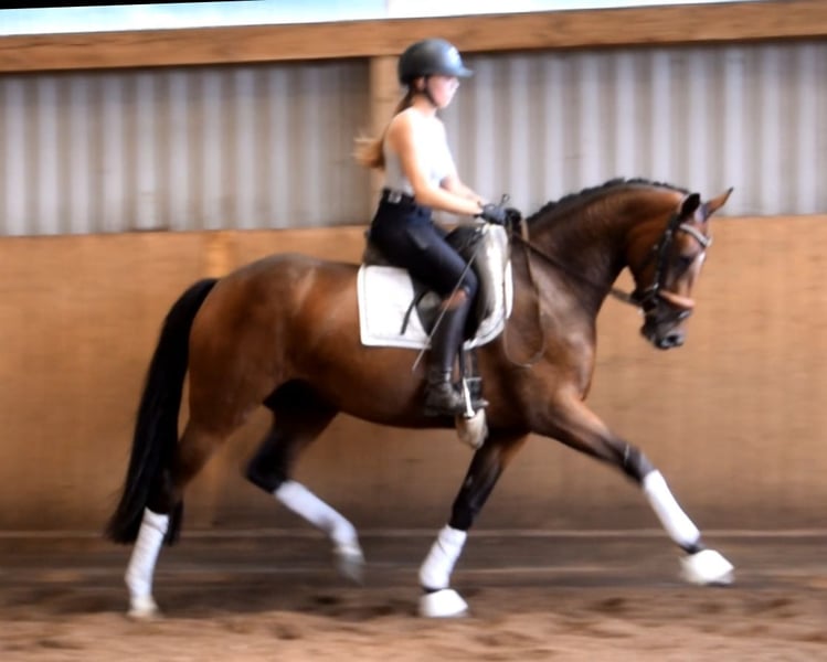 Ein Pferd, wie man es selten findet. Wunderschöne, ausdrucksstarke Stute ausgestattet mit drei super GGA. Vajana hat tollen Charakter und ist sehr leichtrittig. Sie ist wie geschaffen sowohl für den anspruchsvollen Dressursport als auch für Amateurreiter. Sie ist altersentsprechend sehr gut ausgebildet und auf dem Weg zu Dressurpferde -A-. Vajana wird in der Halle und auf dem Aussenplatz geritten und präsentiert sich dort absolut unkompliziert. Probereiten jederzeit nach Absprache möglich. Mehr Infos finden Sie auf unserer Homepage. Hof Heisterbusch Team.