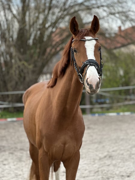 Bezpośrednio od hodowcy, z pierwszej ręki – aktualnie w naszej przygotowalni do jazdy. Młoda klaczka z dużymi partiami, długonoga, poprawna, z trzema bardzo dobrymi gniazdami, oferuje wszystko, aby stać się obiecującym koniem do jazdy i ujeżdżenia. Wyjątkowy charakter, przywiązana, chętna do pracy, odważna. Również interesująca z punktu widzenia przyszłej hodowli. Matka StPrSt, pierwsza klasa dekorowana na wystawie Herwart v.d. Decken, sama odnosząca sukcesy w hodowli. Babcia StPrSt, reserve w konkursach ujeżdżenia. Trzecia matka (Londonderry) wyprodukowała konia S* i 4*S – międzynarodowa klacz Grand Prix, m.in. z tego pokolenia.