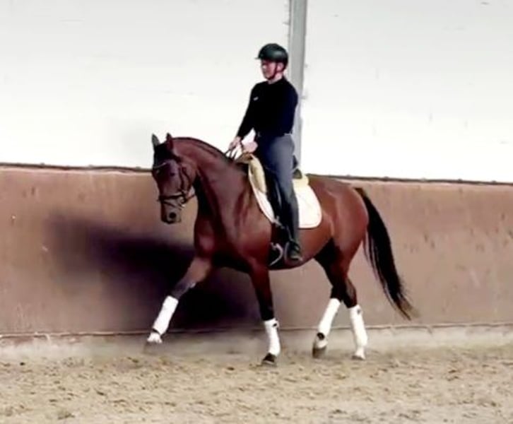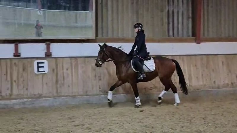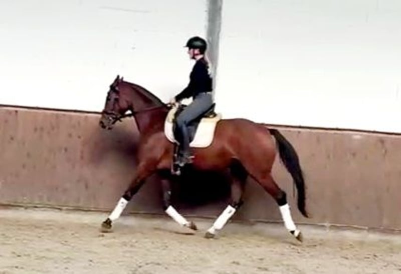 Im Auftrag des Züchters wird hier eine superliebe und sehr hübsche braune Stute mit top Abstammung (Fusionist x Lauries Crusador) angeboten. Sie ist mit derzeit 1,65 m ein ideales Damenpferd. Aufgrund von Bestandsverkleinerung sehr günstig abzugeben. Die Stute ist angeritten. Sie ist sehr brav unter dem Sattel, dennoch aufgrund ihres Ausbildungsstandes kein Anfänger- oder Kinderpferd. Sie hat einen guten Röntgen Tüv. Hauptsächlich ist sie aufgrund ihrer Abstammung für die Dressur geeignet, sie stellt sich aber auch beim Freispringen sehr geschickt an. Für die Zucht wäre sie ebenfalls sehr gut geeignet, da sie eine sehr interessante Abstammung hat ( Vater Fusionist: Franklin- Ehrentanz- Florestan). Schnell sein lohnt sich...eine tolle Stute mit vielen Möglichkeiten zum kleineren Preis!!!