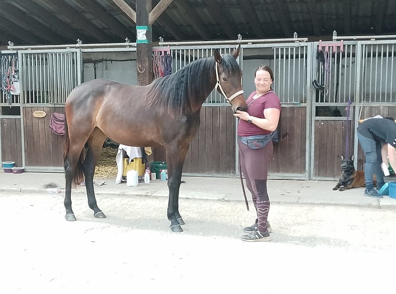Hannoveraanse merrie – Veelbelovend dressuurpaard voor ambitieuze ruiters Te koop staat een elegante en veelbelovende Hannoveraanse merrie, geboren in 2022. Met haar donkere bruintint en een hoogte van 1,65 m is ze zowel qua uitstraling als formaat perfect geschikt voor de dressuur. Deze jonge Hannoveraanse merrie valt op door haar karakter en haar uitstekende bewegingspotentieel. Ze is nog niet volledig aangeleerd, maar toont een open en leergierige houding. Dankzij haar goede afstamming en karakter is ze ideaal voor de ambitieuze dressuurruiter en menner. Ze verkeert in een goede conditie en is klaar voor verdere opleiding op hoog niveau. Bij interesse of voor meer informatie sta ik u graag te woord.