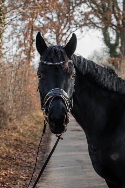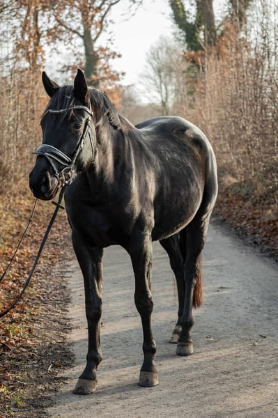 Expressive young dressage mare with excellent pedigree For sale is a tall, talented young mare with outstanding potential for dressage. She currently measures approximately 16.1 hh and is still growing in accordance with her age. The mare is entered for a competition in March 2026. She has already received solid basic training, with particular emphasis on foundational work, calmness training, and fine, correct aids. She consistently demonstrates attentiveness, willingness to learn, and motivation – an unspoiled young horse with an excellent character and great development potential. Special features: - Dressage-oriented, expressive movement - Balanced and relaxed temperament - High rideability and quick comprehension - Strong work ethic combined with a clear mind - Pleasant, cooperative nature In daily handling, the mare presents as friendly, personable, and uncomplicated. She is socially compatible within the herd and impresses with her calm and balanced demeanor. She is barefoot, familiar with both pasture and stable life, and easily integrated into 24/7 turnout. - No known intolerances - No vices - No known health issues A pre-purchase examination can be arranged at any time upon request. This honest and talented young mare combines quality, rideability, and character, making her suitable for both ambitious leisure riders and competitive dressage riders. She already captivates with her impressive presence, elegance, and charisma. She also proves to be reliable in the field: she rides alone in the terrain and remains calm and confident at all times. 📍 Further information, videos, and a personal introduction are available upon serious inquiry.