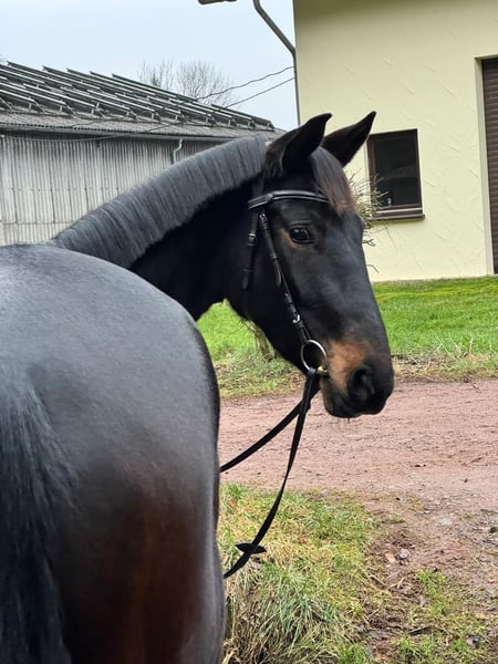 Sehr schweren Herzens müssen wir uns aus gesundheitlichen Gründen von unseren Liebsten trennen. Schwarzbraune, 4- jährige Stute, Stm. ca 1,66 m, von Fürst Belissaro (ausgezeichnet mit dem Weltmeyer-Preis und Vererber für höchste Rittigkeit und Leistungsbereitschaft) aus einer Dimaggio/Warkant-Mutter. Dimaggio war 5-jährig Weltmeister der Dressurpferde und Warkant war DER Aktionstraber des Landgestüts Celle. In der Stute steckt Dressurblut pur. Ihre Feingliedrigkeit und langen Beine hat sie - wie auch die Elastizität – von ihrer Mutter geerbt. Wir haben sie mit viel Liebe und Engagement (da Privatzucht) aufgezogen. Seit November genießt sie eine ganz tolle und vor allem vielseitige Ausbildung und zeigt sich dabei bislang sehr artig und hat unterm Reiter noch nicht einmal gebockt. Hervorzuheben sind besonders ihre Leichtrittigkeit und Lernbereitschaft. Sitzbequem ist sie noch dazu. Ausritte, auch durch Wasser und in Hundebegleitung, absolvierte sie bislang mit Bravour. Auch die ersten kleineren Einzelsprünge unterm Reiter sind kein Problem. Sie war auch als Handpferd schon mit im Gelände. Erste Reitstunden unter 13-jährigem Mädchen – natürlich unter Anleitung der Ausbilderin – kennt sie ebenfalls. Trotzdem ist sie als junges Pferd selbstredend nicht als Anfängerpferd geeignet. Wir suchen einen Menschen, der ihre Sensibilität zu schätzen weiß und Freude an feiner Arbeit hat! Unserem Mädel soll Zeit, Geduld und Verlässlichkeit in einem tollen Zuhause mit viel Auslauf geschenkt werden. Also Grobmotoriker und Ungeduldige sind bei ihr an der falschen Adresse. Reine Boxenhaltung sind für sie und uns absolut tabu! Derzeit läuft sie barhuf, im Gelände mit Hufschuhen. Bitte nur wirklich ernst gemeinte Anfragen - es fällt uns eh schwer genug. Händler absolut zwecklos!!! Auch Bild- und Videosammler mögen sich bitte auf andere Annoncen konzentrieren, dazu ist uns und vor allem der Ausbilderin die Zeit zu schade. Bei wirklichem Interesse schreiben Sie uns eine nette Nachricht. Nach einem ersten Telefonat können wir dann einen Link übersenden, über den die komplette bisherige Ausbildung und ihre Fortschritte anhand von Videos nachzuvollziehen sind. Probereiten nach Absprache gegen eine Aufwandsgebühr natürlich möglich. AKU kann auf Kosten des Erwerbers natürlich veranlasst werden. Bei uns war sie noch nie krank oder lahm. Standort: SL Wir freuen uns, wenn Sie Interesse an dieser zuckersüßen Maus haben. Zum Verkauf steht ebenfalls der 3-jährige Vollbruder (Rappwallach, Stm. 1,70 m).