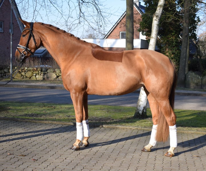 Eine athletisch aufgemachte Stute, die auf den ersten Blick zu überzeugen weiß . Sie verfügt über eine sehr gute Galoppade , raumgreifenden Schritt und eine sehr elastische Trabphase. Top rittig, immer an der Seite seines Reiters. Sie ist sehr nervenstark und sehr einfach zu reiten, deshalb auch für Kinder und Wiedereinsteiger bestens geeignet. Mehr Infos finden Sie auf unserer Homepage. Probereiten jederzeit nach Absprache möglich.