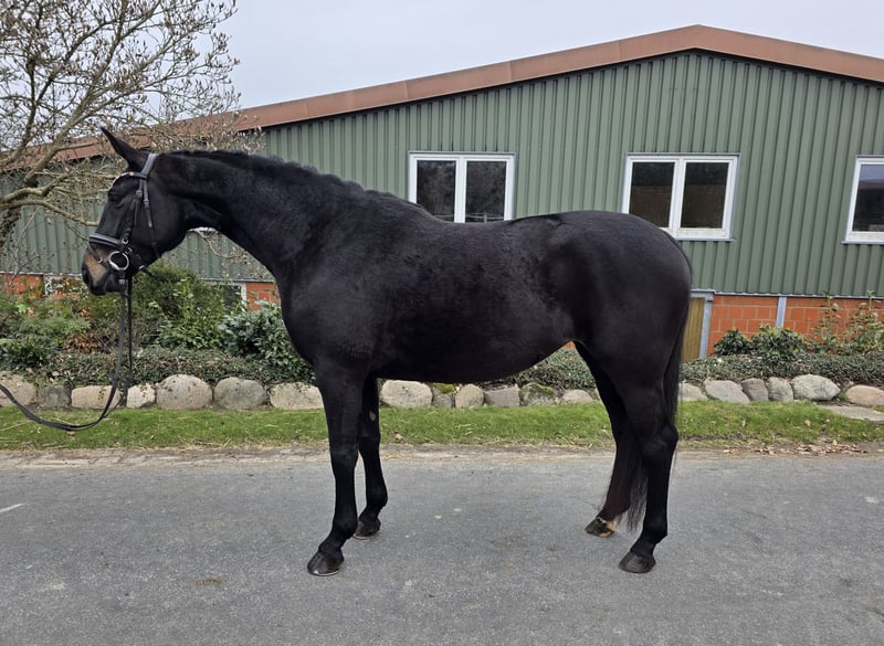 Zum Verkauf steht eine vierjährige Stute von Scolari aus einer San Remo Mutter. Die Stute überzeugt mit drei guten Grundgangarten sowie einem besonders lieben und ausgeglichenen Charakter. Sie ist brav im täglichen Umgang und zeigt sich sowohl im Stall als auch auf der Weide sehr verträglich mit anderen Pferden. Sie ist seit ca. 6 Wochen unter dem Sattel und zeigt sich dabei sehr lernwillig und unkompliziert. Sowohl in der Halle als auch auf dem Außenplatz, auch gemeinsam mit anderen Pferden, bleibt sie stets ruhig und gelassen. Fremden Menschen gegenüber ist sie anfangs im Kopf und Ohrenbereich noch etwas skeptisch. Mit etwas Geduld und dem nötigen Vertrauen legt sich dies jedoch schnell. Durch ihre freundliche Art und ihr angenehmes Wesen eignet sie sich ideal als Nachwuchspferd für ambitionierte Freizeitreiter oder den sportlichen Einstieg. Ein guter TÜV und Video sind auf Anfrage möglich.