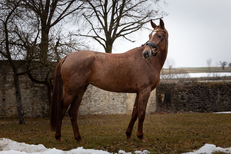4- jährige Dunkelfuchsstute, ca 168 cm groß, Schmiede- und verladefromm, geländesicher! Abstammend von Bon Courage x Ampere Sie verfügt über drei gleichmäßig qualitätvolle Grundgangarten. Trotz ihres jungen Alters schon sehr brav und unerschrocken und absolut kopfklar- egal ob im Umgang oder beim Reiten ein wahrer Schatz. Eine tolle Arbeitseinstellung und Lernbereitschaft runden das Gesamtpaket ab. Sicher auch von Amateur zu reiten - es sollte jedoch Jungpferde Erfahrung vorhanden sein. Ein tadelloser TÜV inkl. Rücken, Hals und Genick liegen aktuell vor. Sie ist regelmäßig geimpft und entwurmt. Bei Interesse können Gerne Videos und weitere Infos verschickt werden - rufen Sie mich hierzu einfach an oder senden Sie mir eine Whatsapp Nachricht an: +49 15114938417