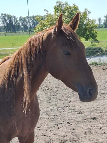 Ziri - what more could an athlete's heart desire? A fantastic, exclusive mare from the first crop of our top stallion Zinero. This in turn is out of the first crop of Zinedream (already mega successful this year with David Will). This blood is sought after and has proven itself many times in competitions. Zinero (50-day test finished with 8.54) passes on an incredible number of his mega qualities to his foals (rideability, composure, super canter, ability, manner, willingness to perform - all rated very highly by him). In our opinion, Ziri is the "perfect" mixture of his dam's disposition (Escudo I) and his sire/Zinero. She is incredibly curious, people-oriented and open-minded and will definitely make her way in the sport. This advertisement is the current opportunity to secure a champion of tomorrow at an early stage and to ride and train him according to your own ideas. Clearly place before price. Even if "stinginess is the order of the day", this horse will not be sold below value. Definitely also a "ladies horse" as she has a close relationship with my daughters. Please inquire by mail or WhatsApp. The horses are currently still in the pasture and will be in the stable in about 3-4 weeks. Ziri could then be picked up. It would be great to give her the winter to settle in and then in spring she can be taken into training or possibly have a foal first. She is a real ray of sunshine - now it's your turn!