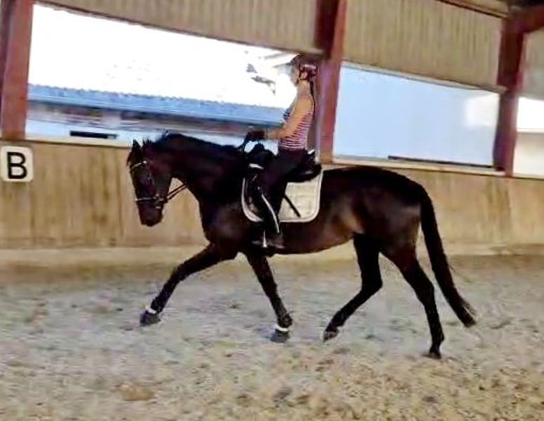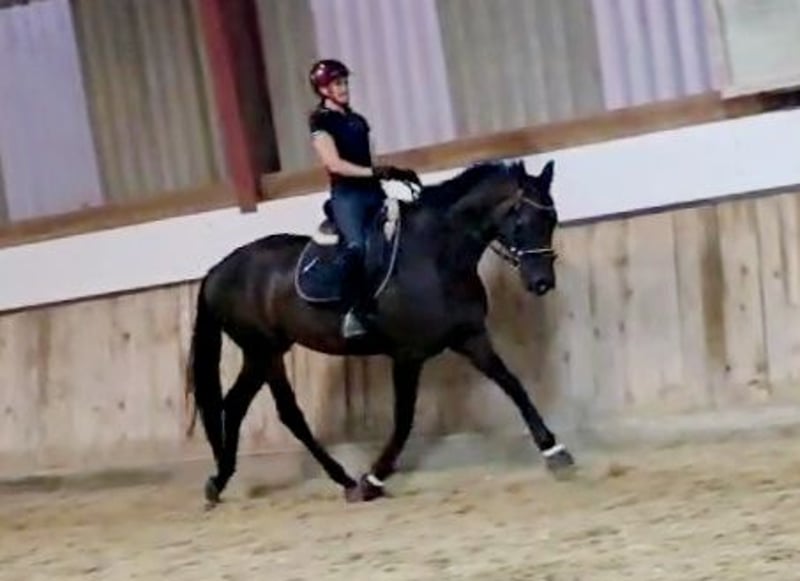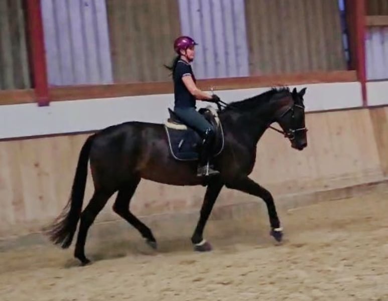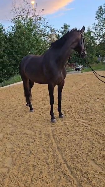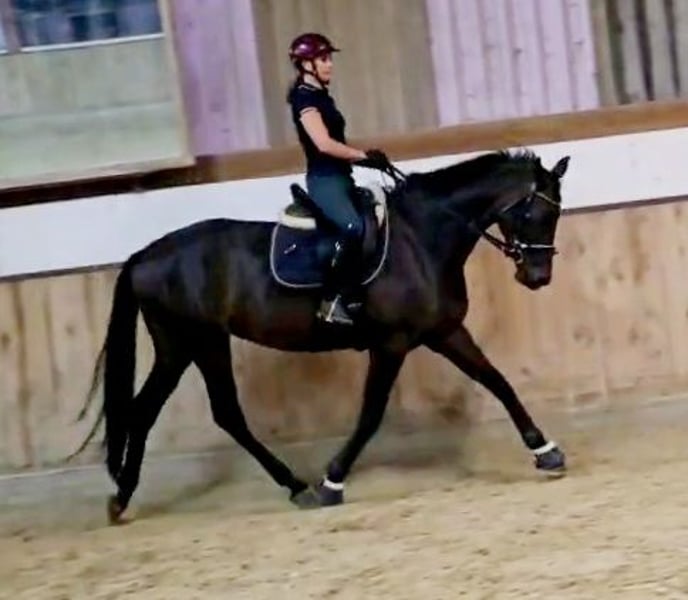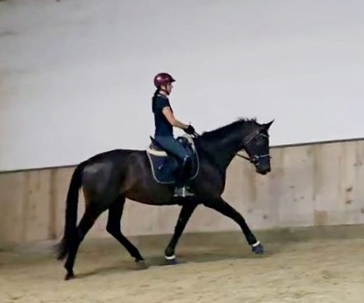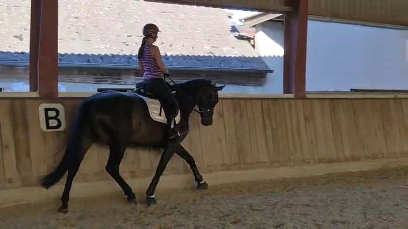 Don't wait, call or write right away! UNIQUE OPPORTUNITY!!!! On behalf of the breeder, a beautiful, light-footed mare with an excellent pedigree (Bellany x Swarovsky) and outstanding potential for dressage is offered! A highly noble and elegant dressage princess in a desirable dark coat. The mare is also very interesting for breeding. She carries top bloodlines in her pedigree (Bon Coeur, De Niro, Sandro Hit, Lauries Crusador, Raphael). The mare is 4 years old and has been started under saddle. Although she has only been under saddle for 2 months, she is well-behaved and shows no vices while being ridden! Overall, the mare is brave and fearless. She has 3 great gaits, especially the trot, which is light-footed, powerful over the back, and very elegant. She shows a very good willingness to collect! The canter is well-balanced, and the walk is ground-covering and absolutely rhythmically secure. The mare comes from a very renowned breeding establishment; she is well-socialized, raised in the best conditions, people-oriented, and easy to handle. Many great offspring come from her dam line (the breeder has also produced top prices at Hanoverian auctions!). The mare has been recently clinically examined and is in very good condition. Good X-rays are also available. She has a chip (no risk finding!!!! Fetlock joint, left hind; Birkeland chip) - otherwise, the X-rays are without abnormalities. Due to her elegant appearance and compact size (current height at withers approximately 1.68m), she is an ideal horse for ladies, juniors, or transition riders. However, due to her age and training level (started under saddle), a certain level of riding ability (license level) is required. The mare can be viewed and tried out by appointment via phone. I am available for any questions at any time. Further videos and photos can be sent upon request (also very gladly via WhatsApp) - just contact me at 0650/3537883. The TÜV can be viewed under the "Documents" section in the advertisement or I can gladly send it.