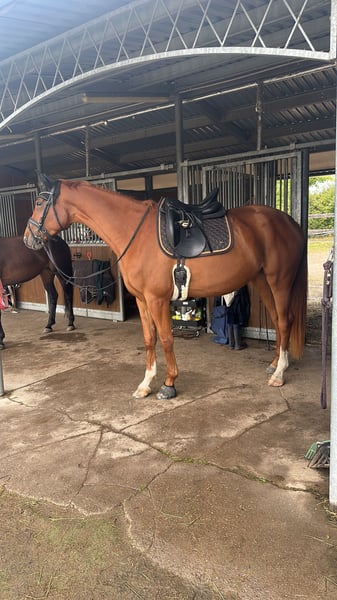 SECRETS ARE FOREVER 4.5 years old 16.1 hh Dressage horse A / Riding horse level Very well-behaved and fearless Suitable for beginners Also interesting for breeding Healthy and allergy-free Front shoes, well-behaved at the blacksmith Interested or have questions? Just give us a call! By phone only: 0341 / 98995223 Mon – Sun from 09:00 AM to 6:00 PM ⸻ More horses for sale at: www.deutsche-pferde-boerse.de Note: Height information is an estimate and not a guaranteed characteristic. Sold on behalf of the owner.
