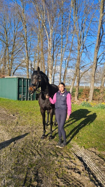 Wir bieten unsere Stute aus eigener Zucht an. Ihr Name ist "Demure Dream" (Rufname Daysi). Daysi ist eine 4jährige schwarz-braune, sportlich aufgemachte Stute von Diarado. Ihr Stockm. ist etwa 1,72 m. Ihre Mutter ist leistungsgeprüft und im Hannoveraner Springpferdezuchtprogramm aufgenommen. Auch sie hat eine hervorragende Abstammung und nennenswerte Vererber im Stamm, wie Landgraf I, Voltaire, Cor de la Bryre. Der Mutter-Vater ist El Bundy. Bereits ider Vollbruder von Daysi war sehr erfolgreich auf dem Bundeschampionat. Auch Daysi zeigt sich vielversprechend für den Springsport. Für den Vielseitigkeitssport können wir uns sie ebenfalls vorstellen. Sie wurde bereits Dreijährig gut angeritten und wird z Zt nach einer langen Sommer- und Winterpause weiter gefördert Sie macht bereits ihre ersten Sprünge und ist brav und mit Freude dabei. Ihr jetziger Standort ist Bremerhaven. Aufgewachsen ist sie bei uns zu Hause in familiärer Atmosphäre in einer gemischten Herde. Ihr Charakter ist einfach toll. Sie ist aufgeweckt mit Power, motiviert mit positiver Arbeitseinstellung, menschenbezogen und stets händelbar und dabei auch noch ein echter Hingucker. Wer Daysi kennen lernen möchte, kann mich gerne kontaktieren.