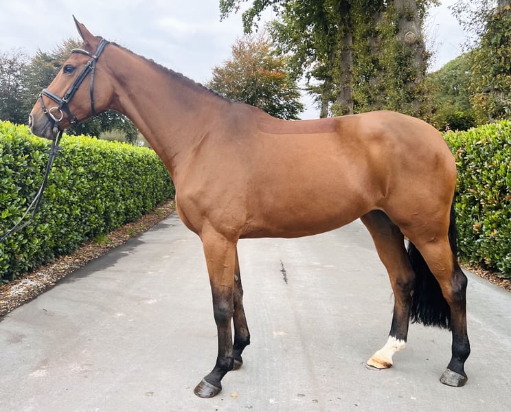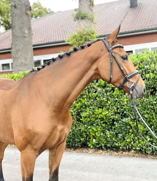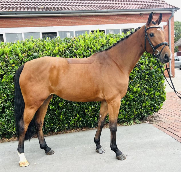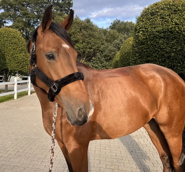 Karalina MP überzeugt als moderne Nachwuchsstute mit beeindruckender Übersicht, hervorragender Einstellung und natürlicher Gelassenheit – ein echtes Talent für Reiter, die sportlichen Anspruch und ein verlässliches Pferd im Alltag suchen. 🐴💖 Seit Anfang 2025 behutsam unter dem Sattel, zeigt sich diese typvolle Tochter des Karajan (v. Kannan – Verdi) aus einer leistungsgeprägten Mutterlinie durchweg rittig, aufmerksam und motiviert. Bereits auf ihrem ersten Turnier präsentierte sie sich souverän und fehlerfrei in einer Clear Round Gewöhnungsspringprüfung – direkt platziert. Ihre Übersicht, die positive Einstellung, die natürliche Balance und das enorme Vermögen machen sie zu einer spannenden Perspektive für den Springsport der Zukunft. Die Abstammung überzeugt auf ganzer Linie: Ihre Mutter Lalina war selbst bis 1,30m platziert und brachte mit Scarlett v. Stolzenberg bereits eine international bis 1,40m erfolgreiche Nachkommin hervor. Vater Karajan, ein moderner Sohn des Spitzenvererbers Kannan aus einer Verdi-Tochter, ist inzwischen international bis 1,65 m unter Marco Kutscher erfolgreich. Er überzeugt durch enorme Springqualität, Vorsicht und Typ – Eigenschaften, die sich auch bei Karalina deutlich wiederfinden. Im täglichen Umgang zeigt sich Karalina absolut unkompliziert: gelassen im Gelände, brav beim Schmied, verladefromm und souverän auf dem Turnierplatz. Mit ihrem klaren Kopf, ihrer positiven Einstellung und ihrer angenehmen Größe von 1,73 m ist sie sowohl für ambitionierte Amateure als auch für Profis interessant, die Wert auf Charakter und Qualität legen. 📍 Standort: 49377 Vechta 📞 Kontakt: 017655380963 Karalina MP impresses as a modern young mare with impressive vision, excellent attitude, and natural composure—a true talent for riders seeking athletic challenge and a reliable horse for everyday use. 🐴💖 Gently under saddle since the beginning of 2025, this typey daughter of Karajan (by Kannan - Verdi) from a performance-oriented dam line is consistently rideable, attentive, and motivated. At her very first show, she performed confidently and faultlessly in a clear-round familiarization show jumping test, placing directly. Her overview, positive attitude, natural balance, and enormous potential make her an exciting prospect for the future of show jumping. Her pedigree is impressive across the board: Her dam, Lalina, was placed up to 1.30m and has already produced an internationally successful offspring, Scarlett v. Stolzenberg, up to 1.40m. Her sire, Karajan, a modern son of the top sire Kannan out of a Verdi daughter, is now successful internationally up to 1.65m with Marco Kutscher. He impresses with his tremendous jumping ability, caution, and type – traits that are also clearly evident in Karalina. In her daily interactions, Karalina is absolutely uncomplicated: relaxed in the field, well-behaved at the farrier, easy to load, and confident on the showground. With her clear head, positive attitude, and comfortable height of 1.73 m, she is attractive to both ambitious amateurs and professionals who value character and quality.