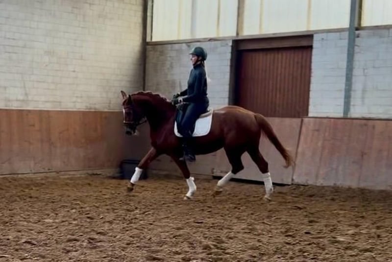 Dahlia ist eine sehr schicke Stute , die sich gut bewegt und einen guten Sprungablauf hat. Sie ist unkompliziert im Handling, geht ins Gelände und kann in die Saison 2026 starten. Im Umgang, an der Longe, unter dem Reiter und mit anderen Pferden ist sie sehr unkompliziert. Trotz ihrer Größe deckt sie sehr gut ab und ist sehr sitzbequem. Eine tolle Stute für beide Sparten und anspruchsvolle Amateure. Dahlia geht täglich in der Gruppe raus, ist vorne beschlagen und hat bereits gute Röntgenbilder welche bei Interesse selbstverständlich verschickt werden können.
