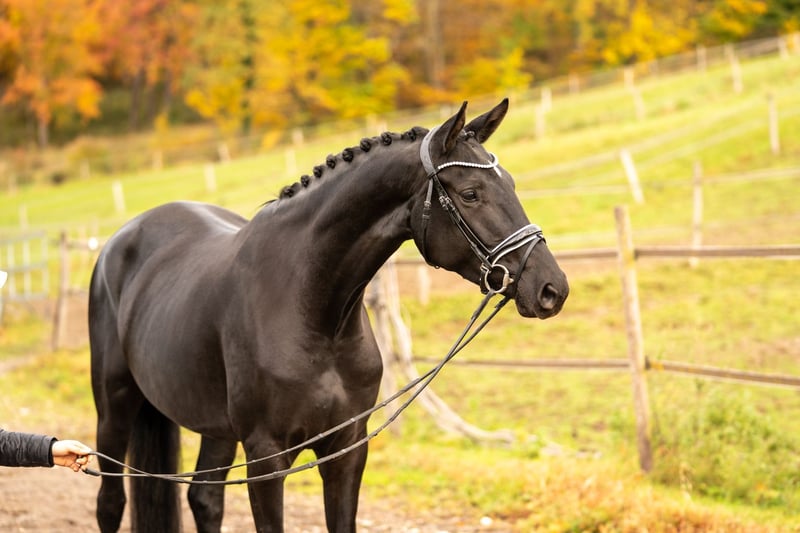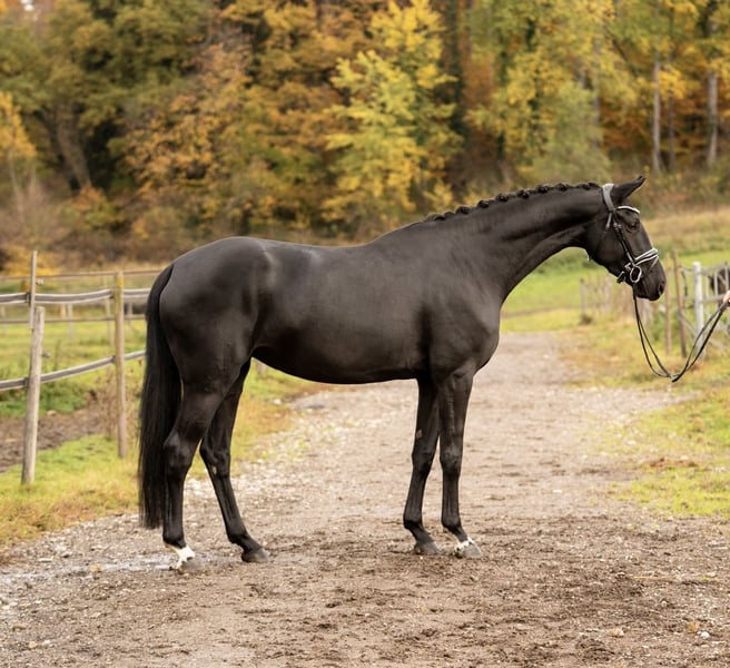 For sale is a very attractive, modern-looking mare by Selectric out of Rilke, born in June 2021, with an current height of approximately 16.1 hh. She comes from her own breeding and upbringing and was able to develop calmly and age-appropriately before being gently started under saddle last summer. She is currently competing at dressage level A and is ready to be further promoted and presented at competitions. She is very light in the aids, easy to sit, and provides her rider with a pleasant riding experience. With her beautiful appearance, expressive demeanor, and modern type, she is a real eye-catcher and offers excellent potential for further development in dressage. She also proves to be well-behaved and uncomplicated in the terrain, both in a group and alone. X-ray images from autumn 2025 are available. An interesting young mare for ambitious riders or amateurs with appropriate support, seeking a beautiful and talented horse for further training. If you are interested or have further questions, we look forward to hearing from you.