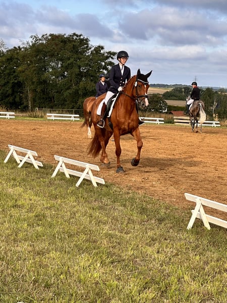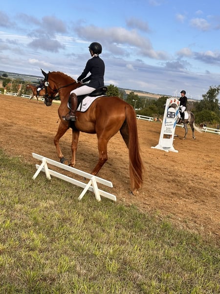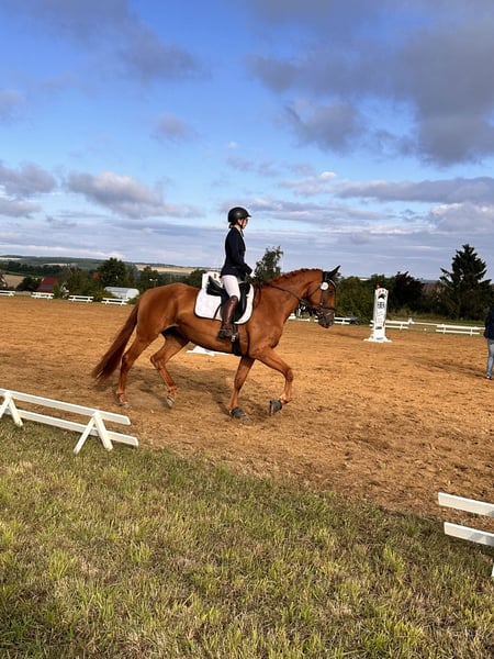 **For Sale: Beautiful Hanoverian Mare** We offer a talented Hanoverian mare for sale. **Details:** - **Breed:** Hanoverian - **Gender:** Mare - **Year of Birth:** 2021 - **Color:** Chestnut - **Height:** 173 cm - **Suitability:** Dressage This young mare impresses with her elegant expression and excellent movements. She already shows a lot of potential in dressage and has a pleasant, willing disposition. She is well-mannered, well-trained, and has already gained some experience under saddle. Ideal for ambitious riders looking for a talented horse for the future. If you are interested or need more information, please feel free to contact me. Viewings can be arranged by appointment. We look forward to hearing from you!