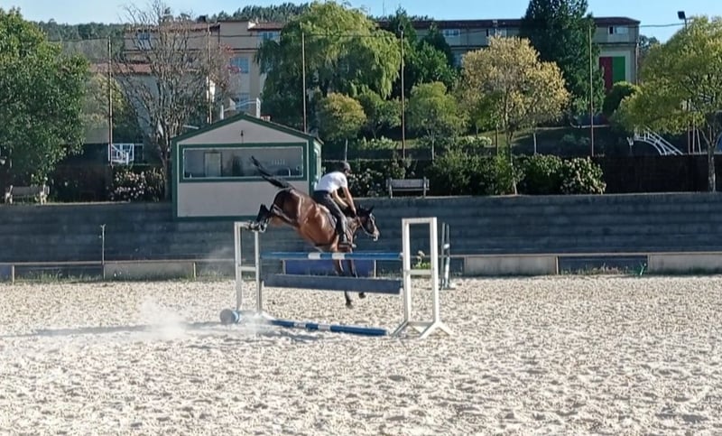 Gran calidad y técnica, saltando 1,20 y 1,30 en recorridos en casa.