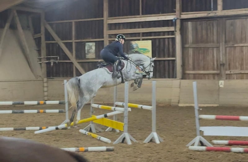 Elegant Hanoverian mare for sale – ideal for show jumping riders! This beautiful grey mare was foaled in 2020 and impresses with her attractive appearance and friendly temperament. With a height of 15.9 hh, she offers the perfect size for ambitious riders seeking a reliable jumping partner. She has recently begun training in show jumping and already demonstrates considerable talent and eagerness to learn. Her movement quality and technical jumping skills make her a promising partner for competitive riding or dedicated leisure riding. Please feel free to contact me for more information or if you are interested. Viewing and trial rides are available by appointment.