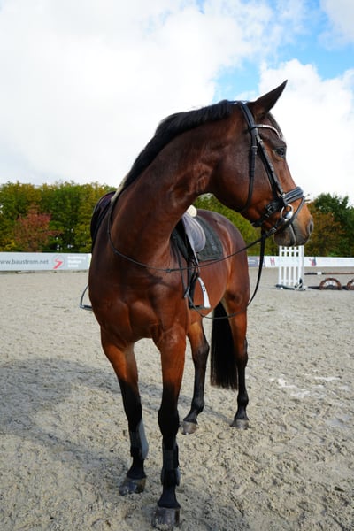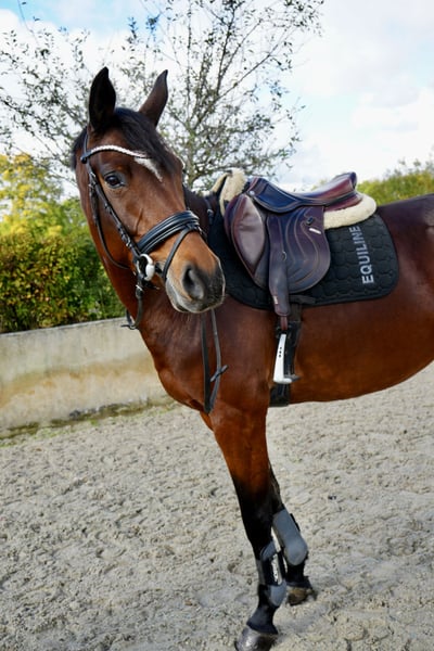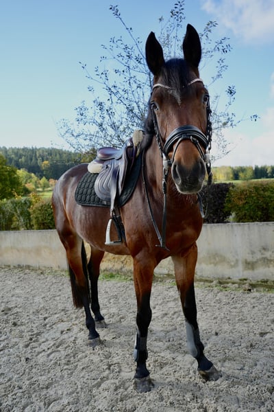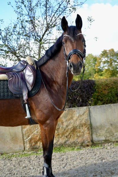6-year-old mare by El Amigo x Verdi – Placed in Show Jumping A For sale is a beautiful 6-year-old brown Hanoverian mare by El Amigo x Verdi, standing at 1.64 m. From the very beginning, she has shown herself to be reliable, cooperative, and attentive – a partner who is motivated to work and eager to please her rider. At the jump, she demonstrates the necessary caution and awareness without being hectic or overly excited. Even in unfamiliar environments, such as at competitions, she remains balanced and calm. She is not easily disturbed by hustle and bustle or foreign atmospheres, presenting herself focused and self-assured. In handling, she is uncomplicated and pleasant: she is good for the farrier and loading, sociable with both mares and geldings, and friendly in daily interactions. Under saddle, she impresses with her good rideability, clear mind, and very decent basic gaits. The mare is unspoiled and possesses a lot of potential for further athletic development, making her suitable for both ambitious riders looking for a future competition horse and amateurs who value an honest, uncomplicated partner. This promising Hanoverian mare is now seeking a supportive home where she can continue to develop and showcase her talent in the show jumping arena. We look forward to your inquiry and are happy to provide further information or videos upon request.