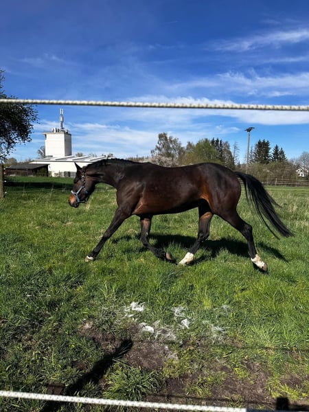 Eine wunderschöne, 2020 geborene braune Stute von Vivaldi x Don Index. Diese charmante Dame überzeugt nicht nur durch ihre ansprechende Abstammung, sondern auch durch ihren liebevollen und umgänglichen Charakter. - Farbe: Braun - Abstammung: Vivaldi x Don Index - Gangarten: 3 schöne Grundgangarten Sie zeigt sich im Umgang als äußerst lieb und verträglich. Zudem ist sie schmiedefromm und verladefromm. Ich kann sie mir sehr gut in einem offenstall vorstellen da sie sich sehr gerne bewegt und andere Pferde sehr liebt. Sie ist aber kein Kleber. Also sie geht auch gut von anderen Pferden weg und in der Halle alleine ist auch kein Problem. Sie ist aber kein Anfänger Pferd sie braucht erfahrene Hände und jemand der viel Zeit und konsequent sie ausbildet. Sie läuft gerne hat viel power ist aber ein sehr robustes Pferd. Kern gesund!! Ich muss mich aus zeitlichen Gründen von ihr trennen. Man muss sich ausgiebig mit ihr beschäftigen und das kann ich ihr leider nicht bieten. Sie kennt Sattel Trense, Reiter an der Longe in allen 3 Grundgangarten. Sie wurde vorletztes Jahr angeritten und dann wieder auf die Koppel gestellt wegen Zeitmangel. 9🥕🥕🥕 Bei Fragen gerne 01602294861 oder freilaufende Videos