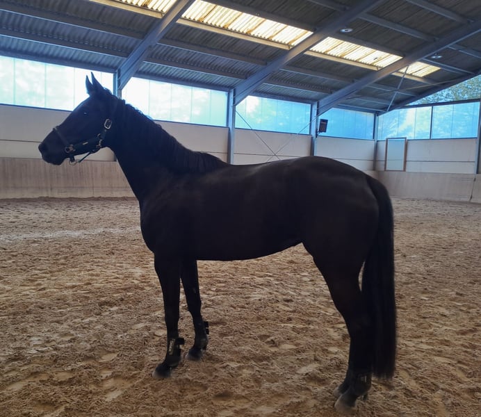 Met pijn in het hart bieden wij onze elegante, zesjarige vosmerrie „Finest Finja“ te koop aan. Ze valt niet alleen op door haar diepzwarte vacht en haar nobele uitstraling, maar toont ook bereidheid tot prestaties onder het zadel. Vanwege haar karakter en haar nog niet volledig ontwikkelde opleiding is zij geen beginnerspaard. Finest Finja zoekt een zelfverzekerde, ervaren ruiter die haar met fijne hulp en consequente, maar liefdevolle leiding het nodige vertrouwen geeft. Wie deze ruiterlijk routine meebrengt, zal in haar een zeer werkwillig en gemotiveerd paard vinden, soms wat stug, voor de ambitieuze vrijetijdssport en betrouwbare buitenritten. Natuurlijk is zij schimmel- en laadbaar, en goed te hanteren bij de dierenarts. Een proefrit en een kennismaking zijn na afspraak op elk moment mogelijk.