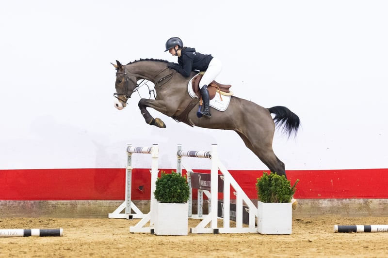Talentierte junge Stute mit Springvermögen und Übersicht Sandra Gold ist eine sechsjährige Stute, die bereits Fohlen hat und nun unter dem Reiter steht. Sie ist angenehm zu reiten, zeigt im Parcours eine gute Übersicht und verfügt über viel Springanlage. Sie wirkt vorsichtig, ist leichtfüßig und springt mit kräftigem Abdruck. Ihre Springtechnik ist korrekt, sie springt mit den Schultern voran in Richtung Reiter. Sie zeigt eine gute Einstellung und ausgeprägte Qualität über den Hindernissen. Eine sehr interessante Sportstute mit großem Zukunftspotenzial. Deckel Sandro Junior (Sandro Boy x Bona) ist bis 1,40 m geprüft und ist in den Holstein- und Hannoveranerverbänden zugelassen. Er ist ein Sohn von Sandro Boy, internationaler 1,60 m Grand Prix-Sieger, einer der einflussreichsten Hengste im modernen Springzuchtaufbau. Sandro Junior ist bekannt für seine Vererbungsstärke in Bezug auf Reflexe, Einstellung und Rittigkeit. Damlinie Die Mutter ist Starlett (Stakkato Gold), die aus einer sehr starken hannoverschen Leistungslinie stammt. Stakkato Gold war bis 1,50 m geprüft und ein bewährter Zuchtstamm für Technik und Einstellung. Aus dieser Damlinie stammen mehrere Sportpferde und zugelassene Hengste, darunter: – Dia Gold (Dia Corrado), Zuchtzulassung OS, 1,40 m – L (Like Angel), Hannoveraner – Last Angel (Los Angeles), 1,30 m Die zweite Mutter Scarlett (Sao Paulo) brachte unter anderem hervor: – Quidamo (Quidam’s Rubin), Zuchtzulassung WESTF, OLDBG, RHEIN, OS, 1,45 m – Cheval de Coeur, zugelassen, 1,30 m – Quilane, 1,45 m – Light Star 4 (Light On OLD), zugelassen, 1,55 m – Samsonite RT, 1,50 m – Like About You, 1,40 m – Donut 16 (Don Diarado), 1,45 m Eine Damlinie voller Leistungsstärke, die zahlreiche Sportpferde im Bereich von 1,30 m bis 1,55 m hervorbringt, sowie mehrere zugelassene Hengste.