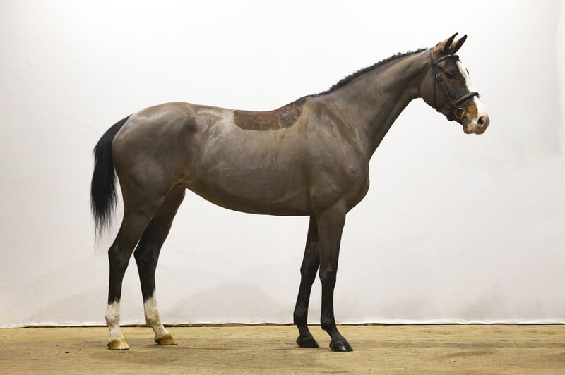 Jolie jument jeune et talentueuse, avec du scope et une bonne vision d’ensemble Sandra Gold est une jument de six ans qui a déjà eu un poulain et qui est maintenant juste sous la selle. Elle est agréable à monter, montre une bonne vision d’ensemble en saut et fait preuve de beaucoup de scope. Elle apparaît prudente, légère sur ses jambes et saute avec un bon impulsion. Sa technique de saut est correcte, sautant avec ses épaules vers le cavalier. Elle montre une bonne attitude et une qualité évidente au-dessus des obstacles. Une jument très intéressante pour le sport, avec un fort potentiel pour l’avenir. Sire Sandro Junior (Sandro Boy x Bona) a concouru en 1,40 m et est agréé dans les stud-books Holstein et Hanovre. Il est un fils de Sandro Boy, gagnant en Grand Prix international 1,60 m, l’un des étalons les plus influents dans le élevage moderne de saut d’obstacles. Sandro Junior est réputé pour transmettre réflexes, attitude et facilité de saut. Lignée maternelle La mère est Starlett (Stakkato Gold), issue d’une ligne de performance très forte dans le stud-book Hanovre. Stakkato Gold a concouru en 1,50 m et est un père reconnu pour sa technique et son attitude. Plusieurs chevaux de sport et étalons agréés proviennent de cette lignée maternelle, notamment : – Dia Gold (Dia Corrado), agréé OS, 1,40 m – L (Like Angel), agréé Hanovre – Last Angel (Los Angeles), 1,30 m La deuxième mère, Scarlett (Sao Paulo), a produit notamment : – Quidamo (Quidam’s Rubin), agréé WESTF, OLDBG, RHEIN, OS, 1,45 m – Cheval de Coeur, agréé, 1,30 m – Quilane, 1,45 m – Light Star 4 (Light On OLD), agréé, 1,55 m – Samsonite RT, 1,50 m – Like About You, 1,40 m – Donut 16 (Don Diarado), 1,45 m Une lignée maternelle riche en performances, ayant produit de nombreux chevaux de sport à 1,30 m–1,55 m ainsi que plusieurs étalons agréés.