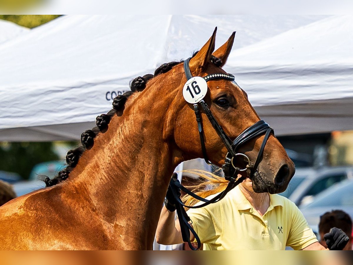 Zum Verkauf steht eine 6-jährige, ca. 172 cm große Hannoveraner Stute, Prämienanwärterin aus Fusionist x Don Marcello x Weltmeyer. Die Stute wurde altersgerecht und schonend ausgebildet und präsentierte sich 2024 auf der Herwart von der Decken-Schau in Verden. „First Temptation DB“ ist nicht nur sportlich, sondern auch züchterisch eine absolut interessante Wahl. Unter dem Sattel zeigt sie sich als vielseitig veranlagte Stute mit viel Vermögen, guter Übersicht und dem nötigen Go. Sie springt sowohl Parcours- als auch Geländehindernisse sicher und motiviert. Mit drei überdurchschnittlichen Grundgangarten überzeugt sie auf jeder Linie. Spielerische Wechsel sowie Traversalen sind bereits Bestandteil der täglichen Arbeit. Ein sportliches Nachwuchspferd, welches eine klare und fördernde Hand benötigt. Mit ehrlichem Charakter und viel Entwicklungspotenzial, ideal für sichere und ambitionierte Reiter im Vielseitigkeits-, Spring- oder Dressursport.