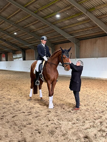 Un jeune cheval cool et bien dressé, déjà très avancé dans sa formation. Il est très agréable à monter en manège, en piste et en extérieur. Il est si facile à gérer qu'il peut être monté par un cavalier moins expérimenté. Il connaît tout ce qu'un cheval de concours doit savoir. Il vit en troupeau au pâturage et connaît également la vie en box. Il a déjà passé des radiographies sans anomalies et porte des fers à l'avant. Contactez-moi personnellement : 0173-2009756 Propriéte d'essai : 30 €