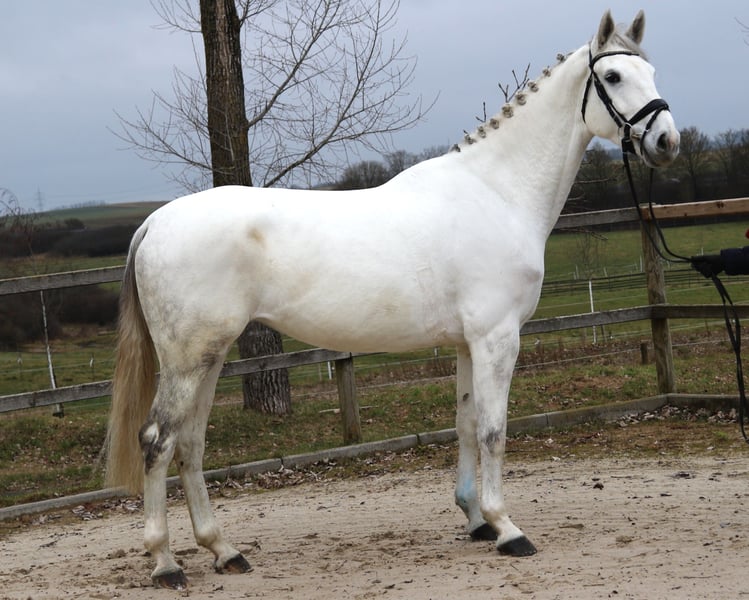 Dieses Schimmelstute wurde sorgfältig ausgebildet und konnte zwischenzeitlich Stilprüfungen mit über 8 gewinnen. Dabei fällt der gleichmässige Galopp und der sichere Sprung auf. Sie springt immer sehr lässig und sicher. Sie springt zudem den Wechsel einfach und verlässlich.