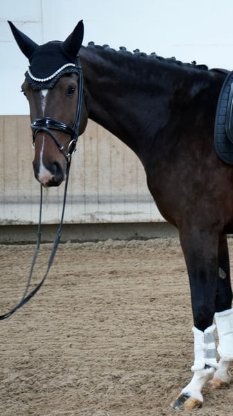We are selling our beautiful 5-year-old bay Hanoverian mare by Class de Luxe x Toronto, standing at 16.1 hh. The mare has been gently backed and has been consistently trained with patience and calmness. She always remains well-behaved, brave, and eager to learn—an attentive partner who aims to please her rider. In handling, she is completely straightforward: shoe- and trailer-friendly, good with mares and geldings, and easy to manage in daily care. Under saddle, she impresses with her rideability, clear mind, and excellent basic gaits. This mare is unspoiled, possesses outstanding potential for further sporting development, and is suitable for ambitious riders looking for a young horse for the future, as well as for riders transitioning from other disciplines or amateurs seeking an honest and reliable partner. She is also well-suited for children to ride. This wonderful Hanoverian mare is now looking for a suitable home where she can be further developed and showcase her qualities. Current X-rays are available for viewing. We look forward to your inquiry.