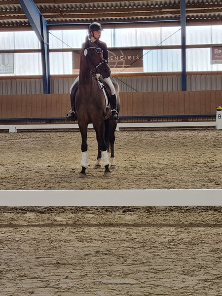 Dieser Youngster lässt keine Wünsche offen, sie ist mehrfach A Dressur auf dem Turnier platziert (auch gewonnen) Super leichtrittig, nervenstark und von Amateuren zu Händeln, können wir sie uns sehr gut als Umsteigerpferd oder für Wiedereinsteiger vorstellen. Auch kleine Sprünge sind gar kein Problem, sie ist auch in Eignungsprüfungen bereits platziert. Im Gelände zeigt sich ebenfalls ihr toller Charakter, egal ob alleine oder in der Gruppe, auch ausreiten ist gar kein Problem. Sie ist vorne beschlagen . Ein sehr guter Röntgen TÜV liegt vor und kann bei Bedarf zugeschickt werden. Bei Interesse an Videos (Turniervideos) oder an einem Probereiten gerne telefonisch unter 01711928847 Kontakt aufnehmen. Wir bitten von Nachrichten über Ehorses abzusehen, da wir hier nur unregelmäßig aktiv sind!