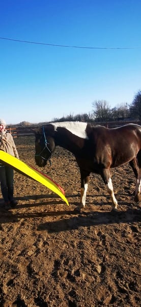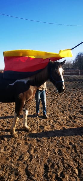 Hallo Leute, ich bin "My little Magic", aber ihr dürft mich Pinti nennen! Ich bin eine 6jährige hübsche, junge Dame und suche eine neue Partnerin in meinem Sattel. Seit Fohlen an lebe ich bei meiner aktuellen Besitzerin, die mich schonend, mit viel Feingeühl und Fachkenntnis ausgebildet und auf die vielen Seiten des Pferdelebens in der großen weiten Welt vorbereitet hat. Nun bin ich so weit, die "Kinderstube" zu verlassen und suche dafür den passenden Menschen. Damit ihr wisst, ob ihr zu mir passt, erzähle ich euch einfach über mich. Meine Mama ist eine Dressur-Hannoveranerstute die auf Wenzel zurück geht. Meine Besitzerin sagt, da habe ich meine tollen, federnden Gänge her. Mein Papa ist ein Paint Horse, von dem ich die gescheckte Farbe und auch mein Gemüt der "coolen Socke" geerbt habe. Ich liebe den Menschen und freue mich, viel Zeit mit dir zu verbringen. Ich kann ganz viele tolle Tricks und begrüße dich gerne jeden Morgen mit einer Verbeugung. Danach gerne auch ein paar Küsschen. Da frage ich aber, ob du das magst - ich habe auch gelernt, dass nicht jeder das möchte und das respektiere ich natürlich auch! Zuhause lebe ich im Offenstall in einer Mädelsgruppe und genieße im Sommer die Weide. Wenn du mich rufst, komme ich immer gerne - wenn ich mir den Bauch nicht zu voll gefressen habe, auch im vollen Galopp wie im Film. In meiner Kinderzeit habe ich die Welt immer mit einem erfahrenen Pferd erkunden dürfen und gelernt, dass es nichts gibt, wovor ich mich fürchten müsste. Da wir hier auch manchmal junge oder erschrockene Pferde habe nimmt meine Besitzerin die gerne auf unsere Ausflüge mit, damit ich denen zeigen kann, dass Verkehr (auch Trecker, Erntemaschinen), plötzlich aufspringende Wildtiere, Gräben, Hänge oder ein See nichts ist, wovor man Angst haben muss. Auch wenn die anderen Pferde mal Umherspringen, lass ich mich davon nicht beeindrucken. Dieses Jahr war ich sogar bei einem ganz wichtigen Besuch vor dem Parlament. Da ging es durch die Innenstadt, vorbei an Straßenbahnen, Bussen, Schiffen und quer durch die Fußgängerzone. Apropos See, ich liebe es im Sommer dort schwimmen zu gehen, ich bin ein echtes Seepferdchen. Das ist nach einem langen und gerne auch mal schnellen Ausritt genau das Richtige. Wenn du mit mir am langen Zügel durchs Gelände bummeln möchtst, ist das super, aber über einen flotten Galopp, egal ob alleine oder in der Gruppe, freue ich mich immer. Ich habe nämlich eine super Grundkondition. So nun aber zu dem, was mich und den Menschen den ich Suche besonders macht: Dass ich gut aussehend, wohlerzogen und charmant bin, brauche ich nicht nochmal zu betonen. Ich habe gute Nerven, bin aber keine Schalftablette. Ich bin jung und dynamisch mit einem butterweichen Ganz zum sitzen. Traben ist wie auf Wölkchen sitzen sagt meine Reiterin =D Wenn auch mal fremde Reiter auf meinem Rücken sitzen, gebe ich mir immer größte Mühe zu verstehen, was sie von mir möchten. Was mich aber wirklich besonders macht, ist was ich alles kann und gelernt habe. Da sagen alle, es gibt kein zweites Pferd, dass so vielseitig ist. Das macht mich natürlich besonders stolz! Als ich zu jung zum reiten war, habe ich immer den anderen Pferden bei der Freiheitsdressur zugesehen und wenn ich zeigleich auf dem Platz spielen durfte, habe ich mich immer mit eingereiht. Daher waren meine ersten Auswärts-Ausflüge Showauftritte mit meiner Herde. Ich war so mutig, dass ich mich sogar vor meinem ersten Publikum direkt hingelegt habe. Die Leute finden mich klasse und ich liebe es, vor Publikum zu stehen! Da habe ich viele tolle Erinnerungen. Licht, Show, Action ist mein Motto. So habe ich die erste Turnierluft geschnuppert, bevor ich mit 4 überhaupt unter den Sattel kam. Da ich nicht angeben wollte, bevor ihr mich ein bisschen kennt, erzähle ich euch jetzt, wo ich in den letzten 12 Monaten alles Schleifen und Pokale gewonnen habe: Dressur: mehrere Siege in A, L und Dressurpferde L, fliegende Wechsel kann ich schon und freue mich nächstes Jahr auf meine ersten Starts in M. Working Equitation: A, L* & L** (fliegende Wechsel im Trailparcours) & Garrocha Arbeit Western: Vize auf dem Finale der Landesmeisterschaft im Trail; Sieg Trail in Hand und Cowboy Challenge (Rinder treiben, Lasso werfen etc.) Rinder: Rinderarbeit einzeln und Team Penning (Kühe finde ich eine super Sache. Das muss mir keiner was erklären, ich weiß was ich zu tun habe!) Springen: mein erstes Parcoursspringen habe ich im Stil direkt gewonnen. Es war zwar nur ein E, aber meine Besitzerin meinte, das würde für den Anfang reichen. Ich fand die Sprünge schon fast zu einfach, aber ich habe mich gut konzentriert und mit viel Übersicht den Parcours bewältigt. Vielseitigkeit: da wir schon bei einer vielseitigen Ausbildung sind, darf natürlich die Vielseitigkeit bzw das Geländespringen nicht fehlen. Auch da habe ich mich erfolgreich bewährt. Aus meinem Alltag bei den Ausritten stehen wir häufig vor größeren Herausforderungen, was Wasser, Gräben und Wälle angeht. Naja auf jeden Fall habe ich auch da direkt eine super Figur gemacht. Und welches Pferd kann von sich schon behaupten, dass es in so vielen Disziplinen Erfolg hat?! Das Beste ist, es macht mir auch alles total viel Spaß! Ganz stolz bin ich, dass ich auch die Arbeit der Hohen Schule lerne. So kenne ich sogar Pilaren. Dort soll ich auch bald piaffieren. Piaffe und Passage kann ich schon so und auch schon mit dir im Sattel. Das mache ich total gerne und auf ganz leichte Hilfen. Da heißt es hinsetzten und genießen. Sobald du mir das Zeichen gibst, gehen wir im Trab oder geregelten Schritt weiter. Also, wenn du jemand bist, der mit mir die ganze Vielfalt der Pferdewelt erleben möchtest, bist du genau das wonach ich suche! Und wenn du dir bei dem ein oder anderen auch unsicher bist, kein Problem, ich passe auf dich auf und nehme dich mit. Außerdem bin ich ja so vielseitig, da finden wir was, was uns beiden Spaß macht! Ausritte. Zirzensi