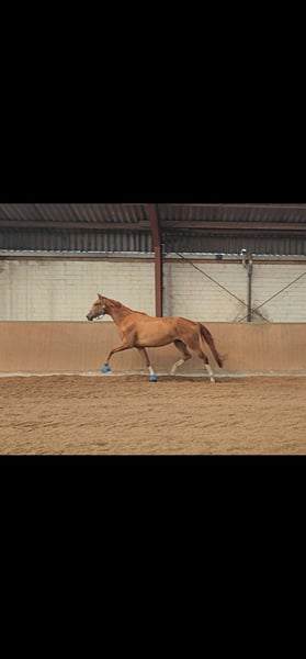 Verkaufe elegante Hannoveraner Stute – Dunkelfuchs, aus 2019 mit Traumcharakter! Ich habe selten ein Pferd erlebt, dass dem Menschen so zugewandt ist. Absolut klar im Handling, mutig, neugierig und zeigt Talent für die Freiheitsdressur. Wenn es mal eine Schrecksituation gibt, ist sie sofort wieder da und entspannt sich schnell. Dank der 3 hervorragenden GGA und der bestechenden Trabmechanik zieht sie alle Blicke auf sich. Ich gebe sie als nicht reitbar ab. Videos und alles Weitere gern auf Anfrage.
