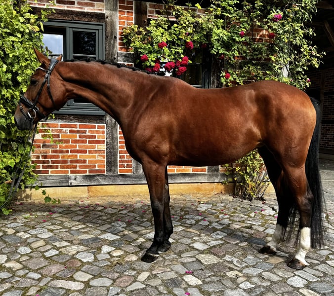Fleur de Lis is a 2018 Hannoverian mare by Floriscount x Desperados. Fleur would be well suited to an ambitious amateur or young rider looking to move up the levels. Fleur is forward thinking and light in the contact, with clear and expressive natural gaits. She has competition experience at A level and is schooling L, but is ready to progress quickly. Fleur is easy to handle on the ground and brave to go hacking alone or in a group. She is currently barefoot and lives happily in a small herd. This is a very personable mare, who excels in an individualised program and would be happy as someone’s primary horse. For more information please do not hesitate to send me a message or give me a call. My number is +491622875335