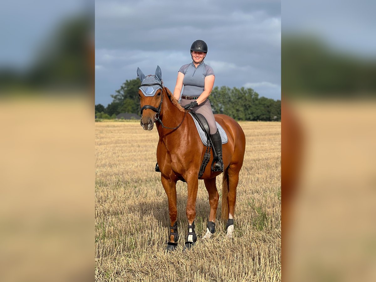 For sale directly from the breeder: this beautiful Hanoverian chestnut mare by Zinedream out of an Earl x Wildfang dam, born in May 2019. She was gently backed at a late age and has completed her first jumps and trail rides. Unfortunately, due to my limited time, she has not been further developed. Given her current training level, she is not suitable as an beginner's horse but definitely has the potential. She is very responsive and easy to handle, and she is extremely gentle in her manner. She loves being around children, is familiar with dogs, cows, and other animals, and is accustomed to tractors and quads nearby, although she does not particularly like them. She currently stays in an open stall during the day and in a box at night. Due to her limited training and a superficial injury to her front leg that still requires care and attention, she is being sold well below value. A jumping saddle adjusted in October and additional tack can also be purchased. At the moment, she is not in training due to her ongoing recovery, so trial riding is not possible. However, videos with a rider from last year are available and can be sent upon request. There is also a video showing various sequences in turnout (the latest ones are from January 2026, in the snow). She grew up as our first foal on the farm, but I am unable to keep her for personal reasons. I am looking for a loving home where she can have a meaningful task. With proper training, she will certainly be able to compete at shows; however, I am selling her as a leisure horse. If you are genuinely interested, please feel free to contact me.