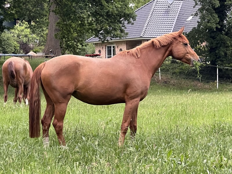 Zum Verkauf direkt vom Züchter steht diese wunderschöne Hannoveraner Fuchsstute von Zinedream aus einer Earl X Wildfang Mutter aus Mai 2019. Sie wurde spät schonend angeritten und hat erste Sprünge sowie Geländeritte absolviert. Leider ist sie aus Zeitmangel meinerseits noch nicht weiter gefördert. Aufgrund des Ausbildungsstandes wird sie nicht als Anfängerpferd verkauft, hat aber absolut das Potenzial dazu. Fein an die Hand zu reiten und absolut lieb im Umgang. Sie liebt es wenn Kinder da sind, kennt Hunde, Kühe und andere Tiere, auch Trecker und Quad direkt neben sich, wobei sie diese nicht so gerne mag. Sie steht derzeit Tagsüber im Offenstall und nachts in der Box. Aufgrund des geringen Ausbildungsstandes und einer oberflächlichen Verletzung am Vorderbein die noch weiterhin Pflege und Aufwand bedarf, später aber laut Tierarzt keine Probleme mehr bereiten sollte, wird sie weit unter Wert verkauft. Ein im Oktober angepasster Springsattel sowie weiteres Zubehör kann ebenfalls erworben werden. Derzeit ist die Stute aufgrund der noch ausheilenden Verletzung nicht im Training und daher ist kein Probereiten möglich! Videos mit Reiter aus dem letzten Jahr sind jedoch vorhanden und können bei Interesse übersendet werden. Ein Video mit verschiedenen Sequenzen im Freilauf finden Sie in der Anzeige (die im Schnee sind ganz aktuell aus Januar 2026). Sie ist bei uns am Hof als erstes eigenes Fohlen aufgewachsen, jedoch kann ich sie aus persönlichen Gründen nicht behalten. Ich wünsche mir deshalb ein liebevolles Zuhause für Sie, wo Sie eine Aufgabe bekommt. Mit Sicherheit wird sie mit passendem Training auch tolle Turniere gehen können, ich verkaufe sie jedoch als Freizeitpferd. Bei ernsthaftem Interesse melden Sie sich gerne.