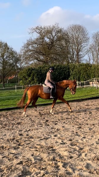 Te koop direct van de fokker: deze prachtige Hannoveraanse vosmerrie van Zinedream, geboren in mei 2019, met een moeder afstammend van Earl X Wildfang. Ze is laat al voorzichtig bereden en heeft haar eerste sprongen en buitenritten gemaakt. Helaas heb ik haar vanwege gebrek aan tijd nog niet verder kunnen opleiden. Vanwege haar trainingsniveau wordt ze niet als beginnerspaard verkocht, maar ze heeft zeker het potentieel. Ze is fijn te rijden aan de hand en zeer vriendelijk in de omgang. Ze vindt het heerlijk als er kinderen aanwezig zijn, kent honden, koeien en andere dieren, en is ook bekend met tractoren en quad's, hoewel ze daar niet zo dol op is. Ze staat momenteel overdag in de paddock en 's nachts in de stal. Vanwege haar beperkte opleiding en een oppervlakkige verwonding aan haar voorbeen, die nog verdere verzorging en aandacht vereist, maar volgens de dierenarts later geen problemen meer zou moeten geven, wordt ze onder de marktwaarde verkocht. Een springzadel dat in oktober is aangepast, evenals ander toebehoren, kan ook worden meegekocht. Momenteel is de merrie door haar nog genezende verwonding niet in training, dus proefritten zijn niet mogelijk! Wel zijn er video's van haar met ruiter uit vorig jaar beschikbaar, die bij interesse kunnen worden toegestuurd. In de advertentie vindt u ook een video met verschillende sequences in de vrije menning (de sneeuwbeelden zijn recent uit januari 2024). Ze is bij ons op de boerderij opgegroeid als eerste eigen veulen, maar ik kan haar vanwege persoonlijke redenen niet houden. Ik zoek daarom een liefdevol thuis waar ze een taak krijgt. Met het juiste training zal ze zeker mooie wedstrijden kunnen rijden, maar ik verkoop haar als recreatiepaard. Bij serieuze interesse hoor ik graag van u.