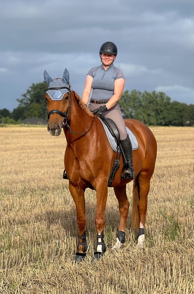 A la venta directamente del criador, esta hermosa y castaña Hannoverana de 2019, hija de Zinedream de madre Earl X Wildfang. Fue montada con cuidado a una edad temprana y ha realizado sus primeros saltos y paseos en terreno. Lamentablemente, debido a la falta de tiempo, no ha sido entrenada más allá. Debido a su nivel de entrenamiento, no se recomienda como caballo para principiantes, aunque tiene un potencial absoluto. Es muy dócil y fácil de manejar, y extremadamente amable en su trato. Le encanta la presencia de niños, conoce perros, vacas y otros animales, así como tractores y quads que pasan cerca, aunque no le gustan mucho. Actualmente, pasa el día en un paddock y por la noche en un box. Por su nivel de entrenamiento limitado y una lesión superficial en la pata delantera, que aún requiere cuidado y atención, pero que según el veterinario no debería causar problemas en el futuro, se vende por mucho menos de su valor real. También se puede adquirir un sillín de salto ajustado en octubre y otros accesorios. Actualmente, la yegua no está en entrenamiento debido a la lesión en proceso de recuperación, por lo que no es posible realizar una prueba de monta. Sin embargo, se disponen de videos del año pasado. Creció en nuestra finca como primer potrillo propio, pero por motivos personales no puedo quedármela. Por ello, busco un hogar amoroso donde reciba una tarea adecuada. Con el entrenamiento correcto, seguramente podrá participar en excelentes concursos; sin embargo, la vendo como caballo de ocio. Si está realmente interesado, no dude en ponerse en contacto.