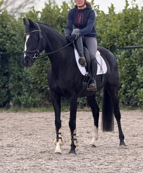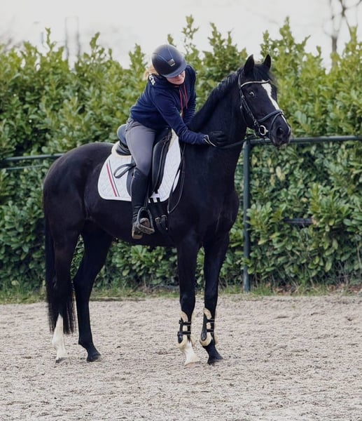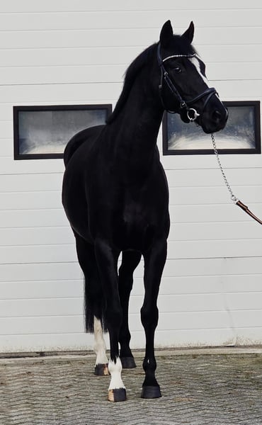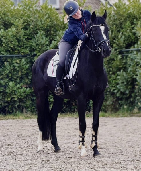 Danzmarie vom Nehnhof ✨ Born in 2018, this elegant mare of approximately 1.65 m is a true eye-catcher 🤍 Hailing from a top pedigree: Desperado x Daddy Cool x Sandro Hit 🌟 Danzmarie is very well-behaved under saddle 🧘♀️, honest and easy to ride. She is willing and always gives her best for her rider 💪🥰 In handling, she is sweet and reliable—a horse you enjoy working with every day 🌸 A mare with quality, a kind character, and great potential for the future ✨ Suitable for someone looking for a wonderful combination of talent and down-to-earthness 🍀 For lunging, free-running, or preliminary and test rides, we charge €35. This amount will be deducted upon purchase. It is almost impossible for us to respond to all messages and emails; please contact the mobile numbers below ⬇️ 📲 +31 615117573 or +31 6 21174115 (WhatsApp or call)