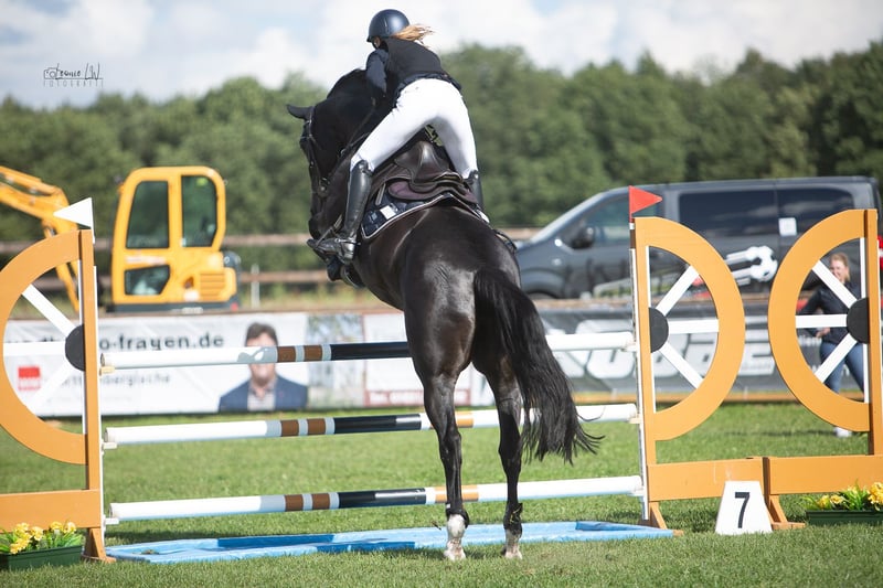 Hannoverian Black Mare For sale is a beautiful Hannoverian mare, born in 2017. She presents herself in an elegant black and has a height of 171 cm. Violetta (Veracruz 11) has already competed in tournaments in 2021. Due to personal reasons, she had a longer break. Since 2024, she has been actively participating in competitive sports. I am currently riding this talented mare at L-level, and in training, we also jump 1.25m, where she shows great potential. She has a friendly character and is very well-behaved both in handling and under saddle. Ideal for experienced riders looking for a partner for show jumping. She goes out both alone and in a group. From this dam line, a licensed stallion and international show jumping and auction horses have emerged. If you are interested or have further questions, please feel free to contact me. The price includes VAT. Please do not respond here, as this will not be considered, but contact me directly at 0176/ 72 88 17 36 via WhatsApp or by phone. Viewings are possible by appointment.