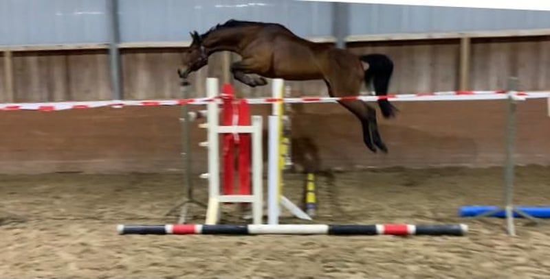 Soraya“ ist eine 8 jährige Hannoveraner Stute von Stolzenberg x Graf Top. Sie ist ca 175cm groß. Sie befindet sich aktuell im Prozess des Antrainierens nach einer 2 jährigen Fohlenpause. Sie wird bereits wieder regelmäßig dressurmäßig gearbeitet, unter dem Reiter gesprungen und geht regelmäßig ausreiten. Um auf dem Turnier zu starten, braucht sie jedoch noch ein bisschen mehr Routine. Sie ist im Umgang und beim Reiten brav und unerschrocken und auch beim Springen immer entspannt und läuft nicht am Sprung vorbei oder ähnliches. Sie hat ordentlich Vermögen am Sprung und ist sehr vorsichtig und geschickt beim Springen, sodass sie sicherlich mit ein wenig Ausbildung auch bis in die höheren Klassen starten kann. Auch beim Springen von Geländehindernissen hat sie bereits Erfahrung gesammelt. Bisher hat sie noch keine Turniererfahrung. Sie brachte 2025 ein Fohlen auf die Welt, welches als Goldprämienfohlen prämiert wurde. Sie nahm sofort beim ersten Mal besamen auf und sowohl die Geburt, als auch die Zeit mit dem Fohlen verliefen reibungslos. Sie ist selbst im Hannoveraner Hauptstutbuch als Zuchtstute eingetragen, weshalb sie auch für die Zucht interessant ist. Bei Interesse oder Fragen, melden Sie sich doch gerne bei mir. Laleh Alimoradian 015228924592