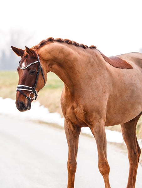 Quadira (geb. 2018) ist eine großrahmige Stute mit ca. 178cm Stockmaß und sicher auf L-Niveau ausgebildet. Geschmeidige Grundgangarten und eine feine Reaktion an den Hilfen sorgen für ein harmonisches Reitgefühl und machen sie zu einer besonders angenehmen Partnerin. Sie ist äußerst unkompliziert im täglichen Training. Quadira überzeugt durch ihre Ruhe, Verlässlichkeit und ihren angenehmen Charakter, wodurch sie jeden Tag Freude bereitet. Ein Pferd, das Sicherheit vermittelt, Spaß macht und sich stets gelassen und brav zeigt.