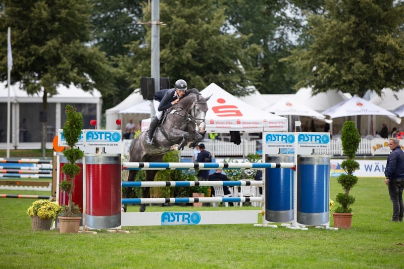 Die Hannoveraner Stute wurde im Jahr 2017 geboren und befindet sich seit Jährlings-Alter in unserem Besitz. Auf der Vaterseite steht der springgewaltige Diacontinus. Auf der Seite der Mutter präsentiert sich For Joy (For Pleasure). Beide Seiten bilden die perfekte Grundvoraussetzung für viel Vermögen für den Springsport. Die direkte Halbschwester sammelte im Laufe ihrer Karriere internationale Platzierung bis zur schweren Klasse (1,60m) in Kanada. Im Laufe der Ausbildung in den vergangenen Jahren wurde die Stute von uns persönlich vorgestellt und sammelt Platzierungen und Siege von Springpferde-Prüfungen der Klasse A bis Springprüfungen der Klasse S (1,40m). Die Hannoveranerin ist eine absolute loyale Partnerin im täglichen Umgang. Mit dem Herz am rechten Fleck stellt sie sich in jeder Situation unkompliziert dar: Vom Putzen und Hufe geben bis zum Satteln und Trensen ist sie eine absolute Musterschülerin. Durch die Aufzucht und Ausbildung im familiären Umfeld kennt sie den Umgang mit bspw. Kindern, Hunden sowie Landmaschinen. Auch das Ausreiten - an befahrenen Straßen und auch alleine - stellt kein Problem dar. Im Gegenteil! Beim Beschlagen sowie Verladen (auf bspw. Anhänger sowie Sprinter) ist sie ebenfalls super unkompliziert. Die Grundgangarten sind sehr gut und bilden somit auch für die tägliche Dressurarbeit ein gutes Fundament. Aufgrund der perfekten Größe wird die Stute zurzeit abwechselnd von Frau und Mann geritten. Beim Reiten und im Parcours ist sie stets motiviert, zeigt sich willensstark und bringt die gewisse Härte und Ausdauer für den gehobenen Springsport mit. Durch ihr schickes Auftreten ist die Stute ein echter Hingucker und eine tolle Sportpartnerin, die in ihren Anlagen gefördert werden möchte. Da wir eine Vielzahl von Nachwuchspferde besitzen, verkaufen wir die Stute aus Gründen des Zeitmangels. Röntgenologische Untersuchungen von Oktober 2023 liegen ohne Befunde vor.