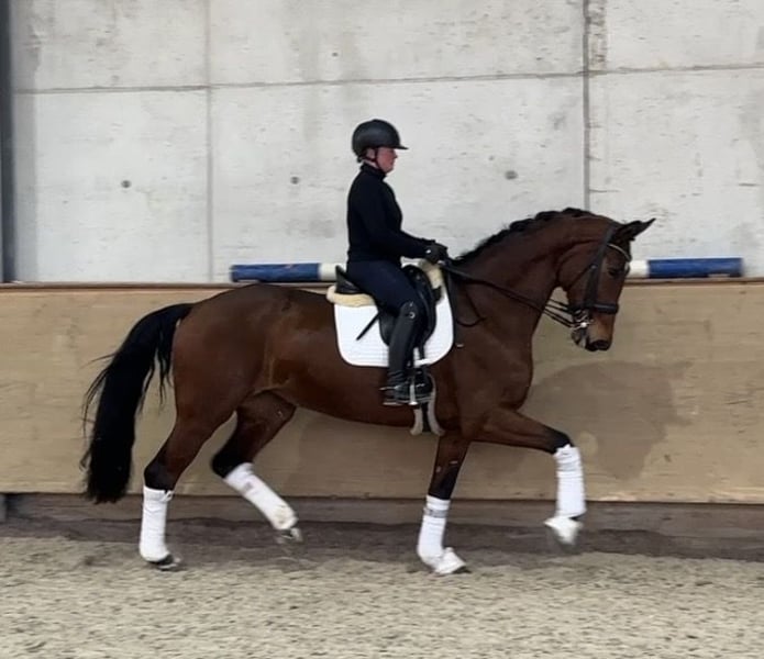 - Alter: 9-jährig - Größe: 1,78 m - Ausbildungsstand: L-Dressur fertig, M angefangen Abstammung: Finnigan x Rascalino x De Niro - TÜV: aktuelle Röntgenbilder liegen vor - Standort: Gestüt Schorer, Frankenhofener Str. 3, 86860 Jengen/Weicht Diese Stute überzeugt durch ihre Größe, Rittigkeit und positive Einstellung zur Arbeit. Sie ist aktuell sicher auf L-Niveau und wird auf Trense wie auch Kandare geritten. Seitengänge werden derzeit weiter gefestigt, die fliegenden Wechsel befinden sich im Aufbau. Bei entsprechender Förderung ist sie zum Sommer M-einsatzbereit. Trotz ihres großen Rahmens ist sie ein feines, sensibles und sehr angenehmes Reitpferd, stets lernwillig und mit klarer Versammlungsbereitschaft. Besonders in den versammelten Lektionen zeigt sie viel Talent und ein gutes Körpergefühl – ein Pferd, das noch deutlich unter seinen Möglichkeiten geht. Im Umgang präsentiert sie sich lieb, menschenbezogen, unkompliziert und sozialverträglich. Sie kennt den normalen Reitalltag, ist schmiede- und verladefromm, kennt Führmaschine, Koppel (auch mit anderen Pferden) sowie Ausreiten. Da die sportliche Förderung bei den Vorbesitzern nicht im Vordergrund stand, weist sie noch keine nennenswerten Turniererfolge auf – ist jedoch jederzeit turniereinsatzbereit und bietet sehr viel Entwicklungspotenzial. Ein Pferd, das sich sowohl für den ambitionierten Amateur als auch für den Profi als interessantes Investment eignet.